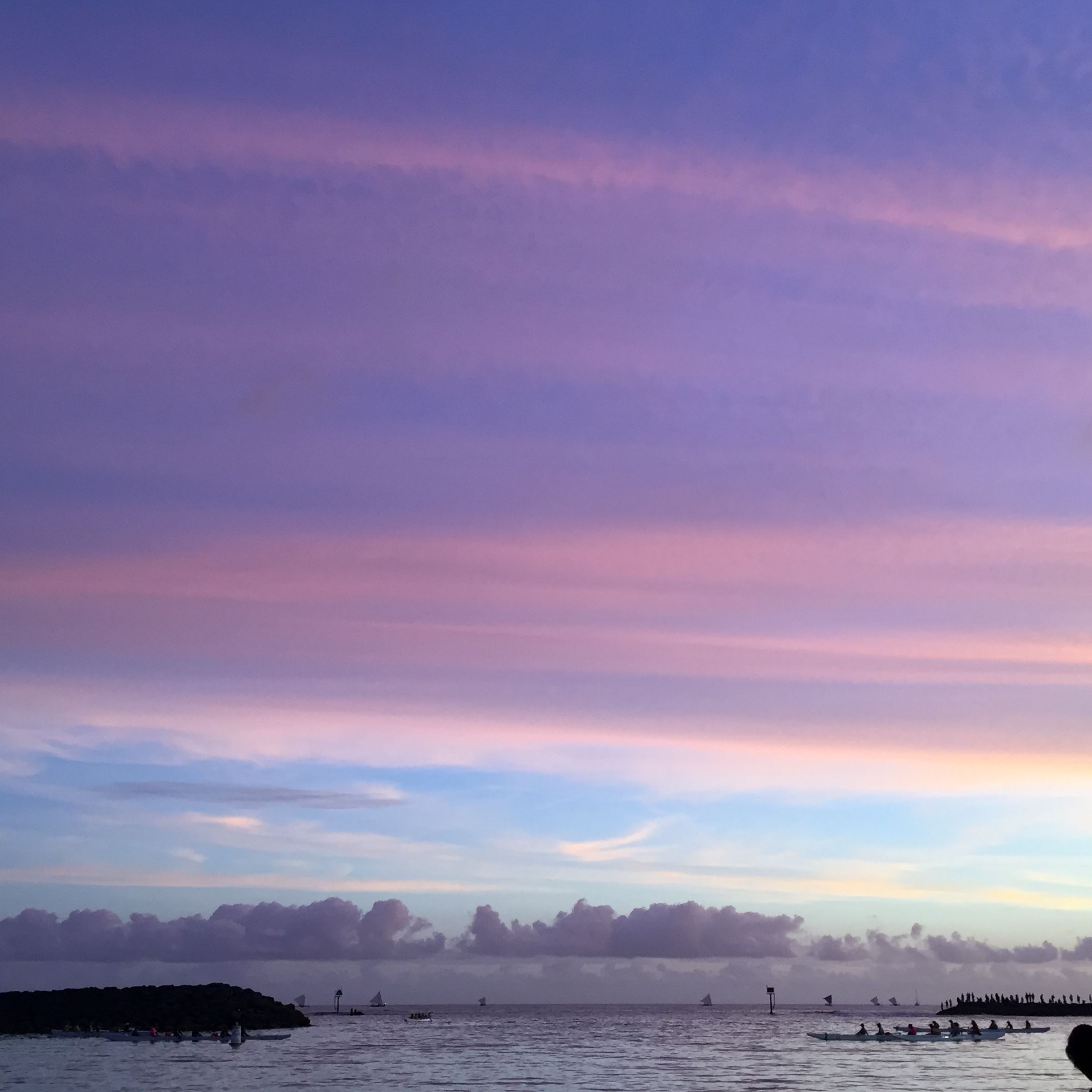 Dawn approaches Guåhan (Guam) on 22 May 2016 and downtown Hagåtña is a hive of activity. Groups of people hasten towards the marina, weaving their way through the newly constructed Festival village to the dark silvery outline of the shore. Throngs of people crowd along the length of Agana Bay, climbing over rocks to get a better look out towards the horizon. There is laughter and teasing amidst a gentle jostling for space, as those gathered wait for the sun to pierce through the pinky haze, hoping to catch a first glimpse of the boats waiting at the pass beyond the reef.